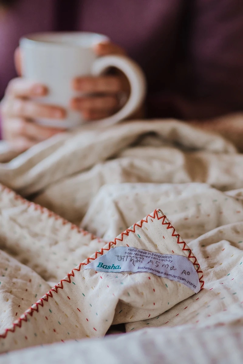 Basha’s handmade products are more than beautiful—they tell a story of resilience, hope, and transformation. Each piece is crafted in Bangladesh using recycled and locally sourced materials, blending traditional kantha stitching with thoughtful, modern design.
